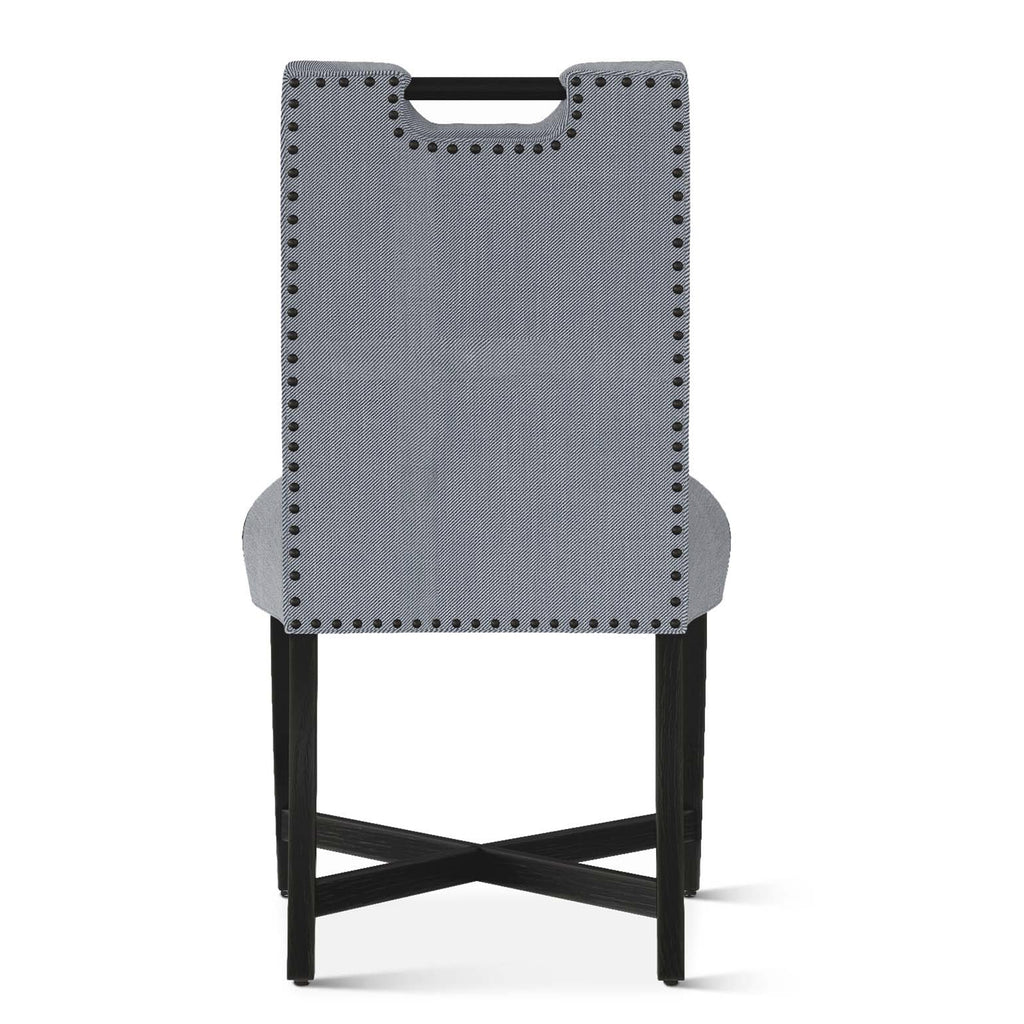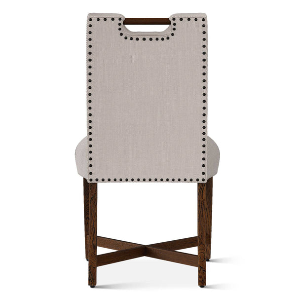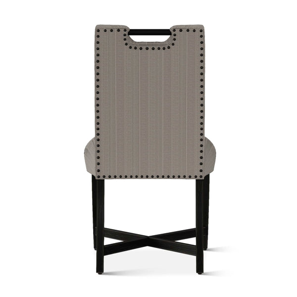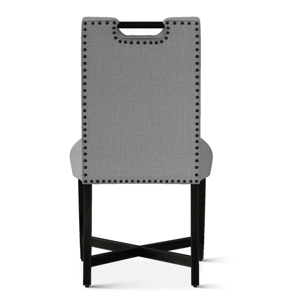 The Condesa dining chair has beautiful lines, a chic nailhead detail along the back, and a built-in handle for easy mobility.