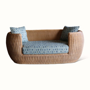 Blue Round Wicker Mirror