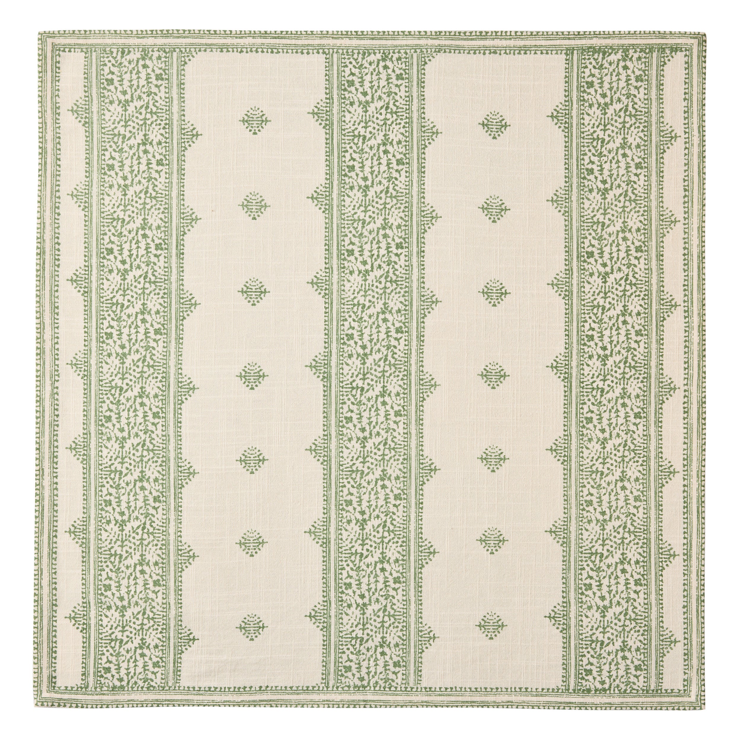 Peter Dunham + Hudson Grace Olive Green Fez Stripe Natural Printed Tablecloth