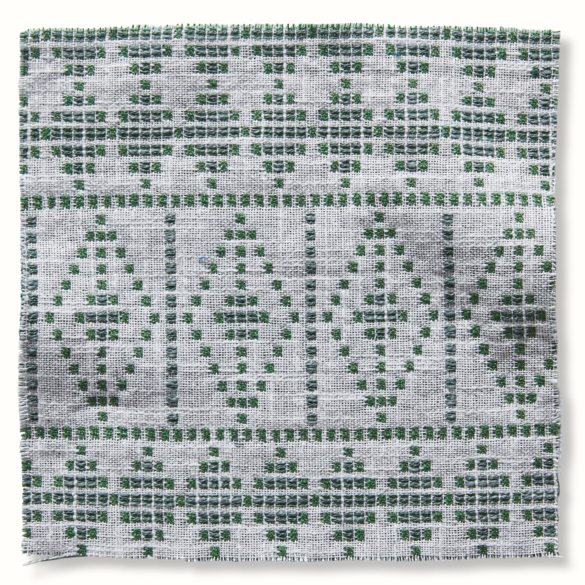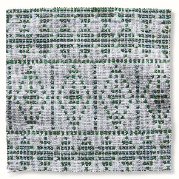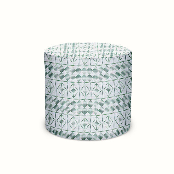 Indoor/Outdoor Pouf in Peter Dunham Textiles Souk Green/Gray on White