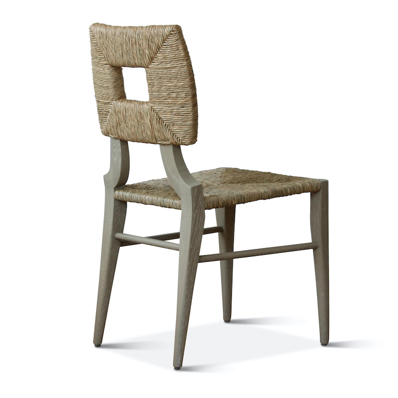 A re-edition of a chair bought at a Hollywood memorabilia auction and attributed to legendary designer, T. H. Robsjohn-Gibbings. The original was made famous in a scene of the 1953 hit movie How to Marry a Millionaire featuring Lauren Bacall and Marilyn Monroe. The deceptively comfortable chair is made by hand in Los Angeles with oak and natural rush. Custom seat cushions are also available and sold separately.