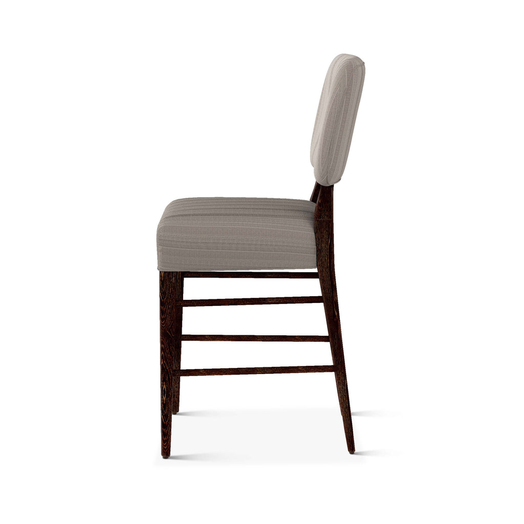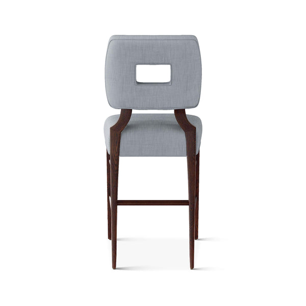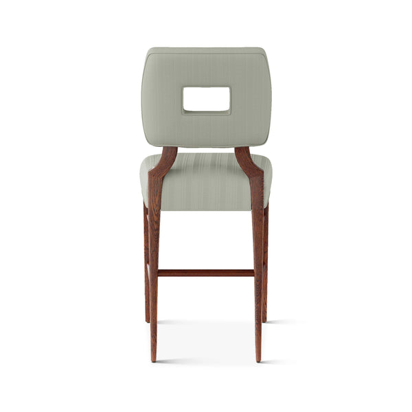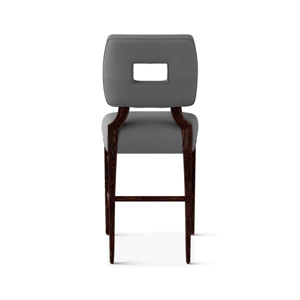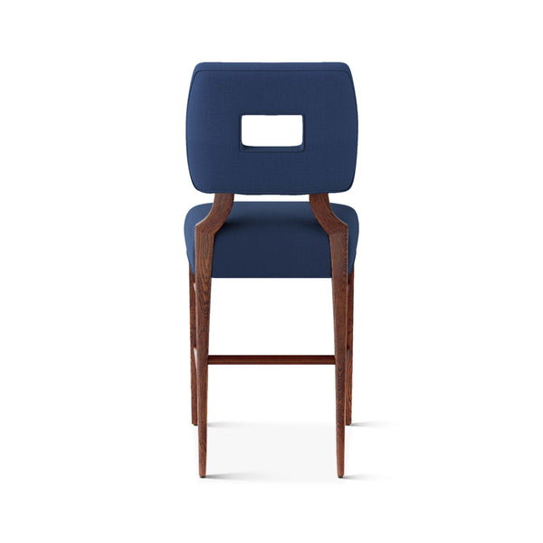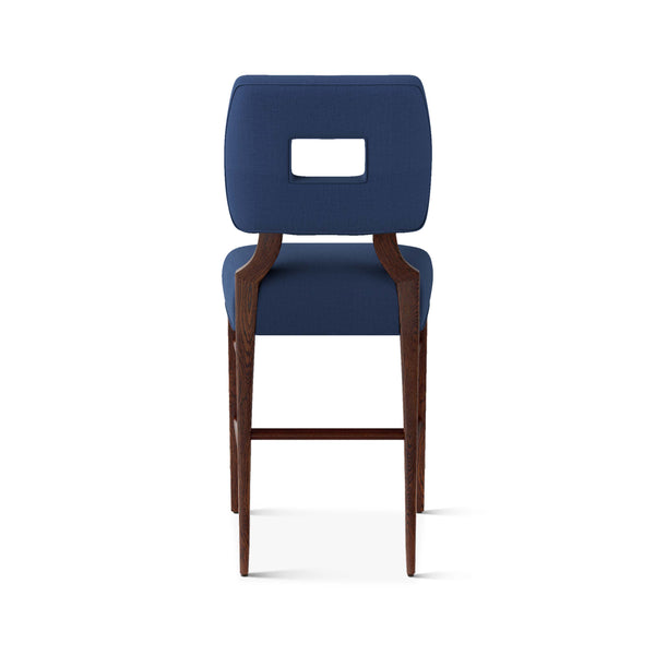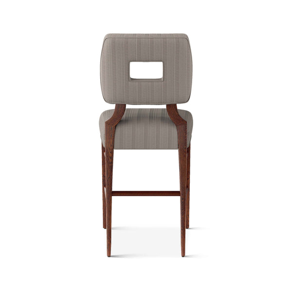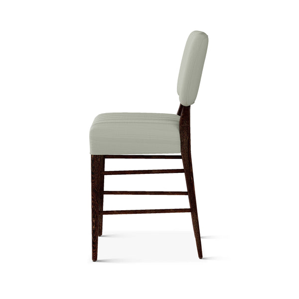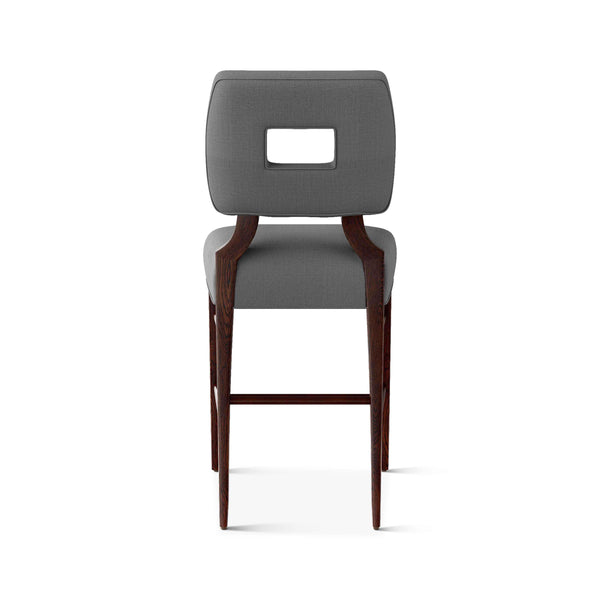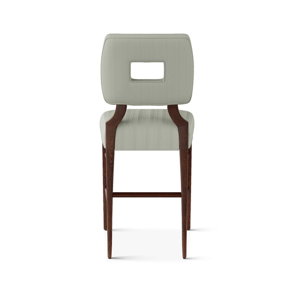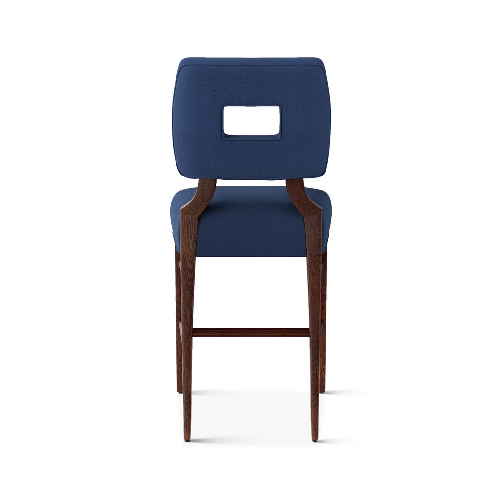 An upholstered, counter-height riff of a chair bought at a Hollywood memorabilia auction and attributed to legendary designer, T. H. Robsjohn-Gibbings. The original was made famous in a scene of the 1953 hit movie How to Marry a Millionaire featuring Lauren Bacall and Marilyn Monroe. The counter stool is available in one of our six indoor/outdoor performance textiles, otherwise requires customer's own material (COM). Please include COM fabric details in order notes at checkout.