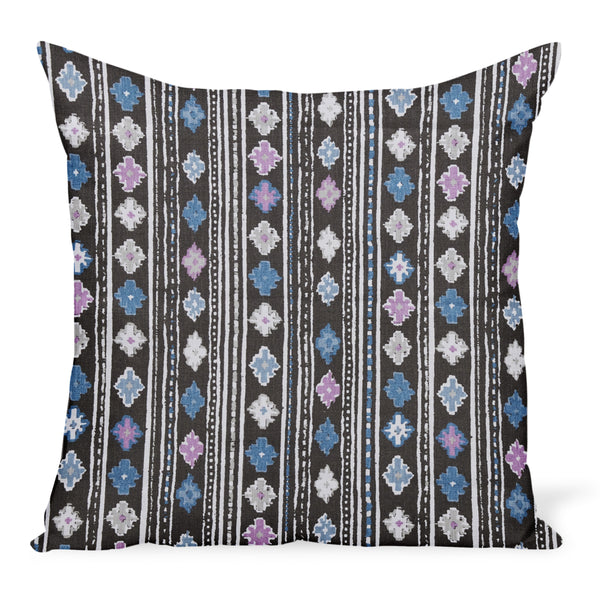 Peter Dunham Textiles Gita in Blue/Pink on Chocolate Pillow