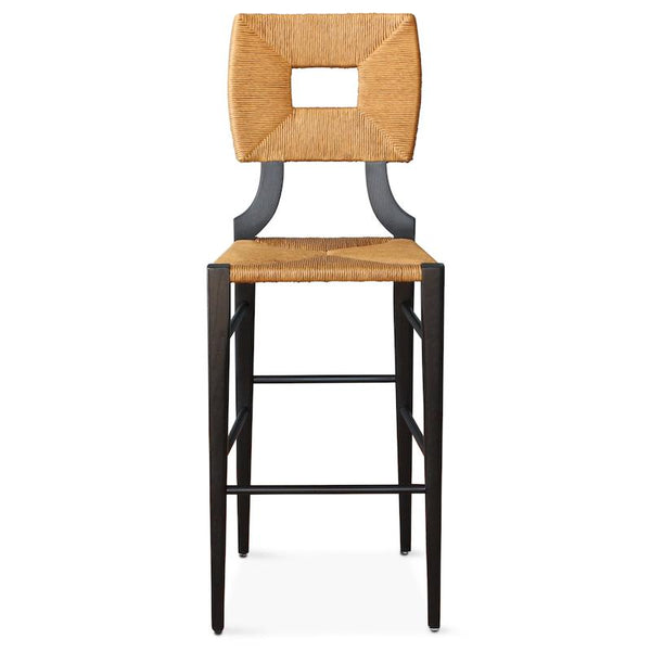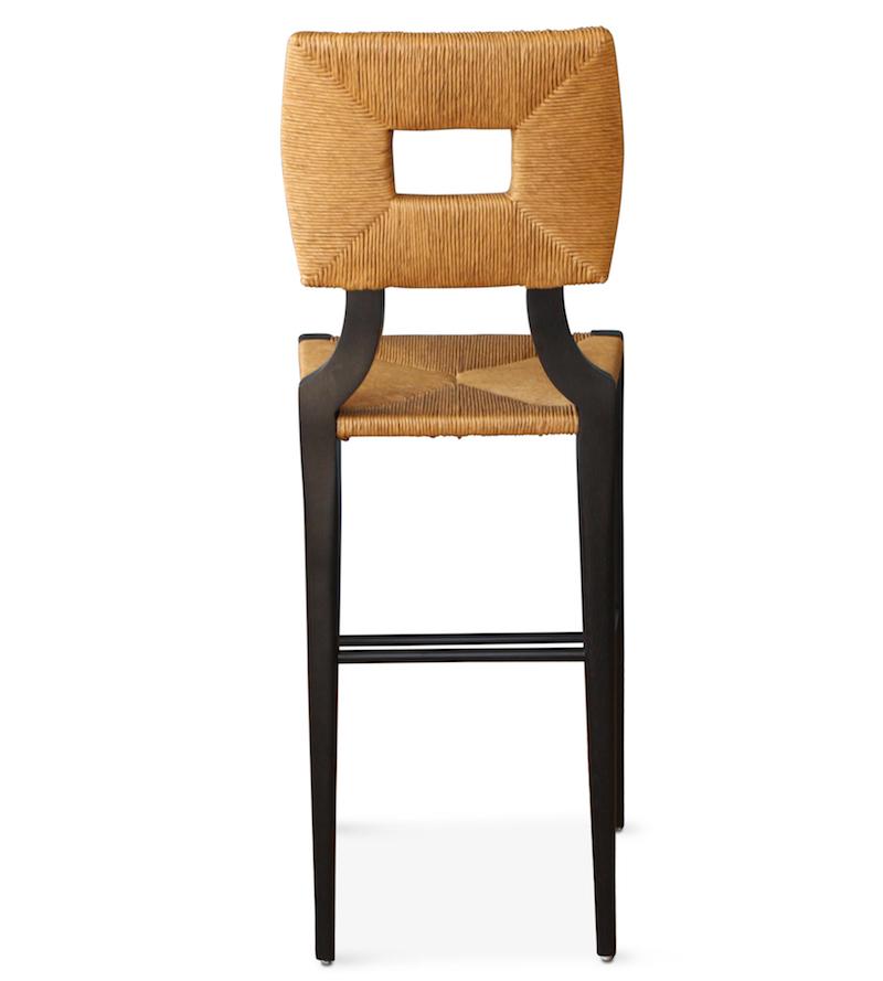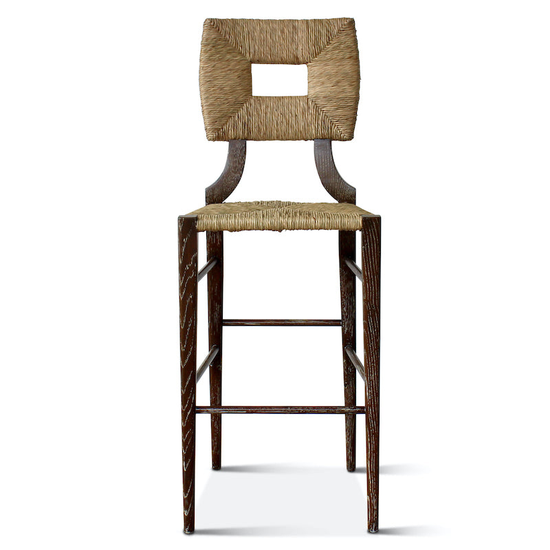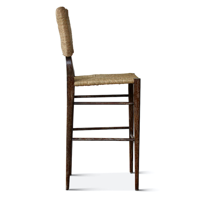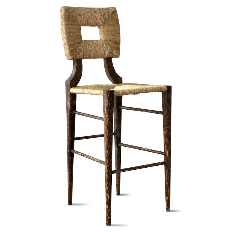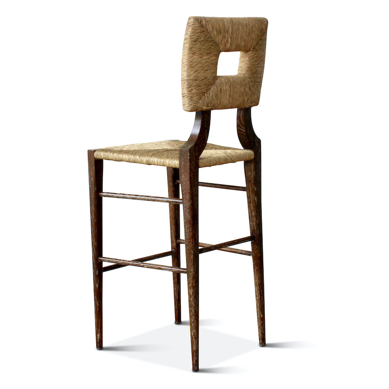 The barstool version of our How To Marry A Millionaire chair, bought at a Hollywood memorabilia auction and attributed to legendary designer T. H. Robsjohn-Gibbings. The deceptively comfortable chair is made of oak by hand in Los Angeles. Also available as a counter stool, armchair, and side chair. Custom seat cushions are also available and sold separately.