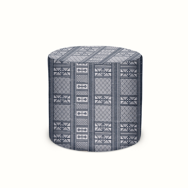 Indoor/Outdoor Pouf in Peter Dunham Textiles Masai White on Indigo