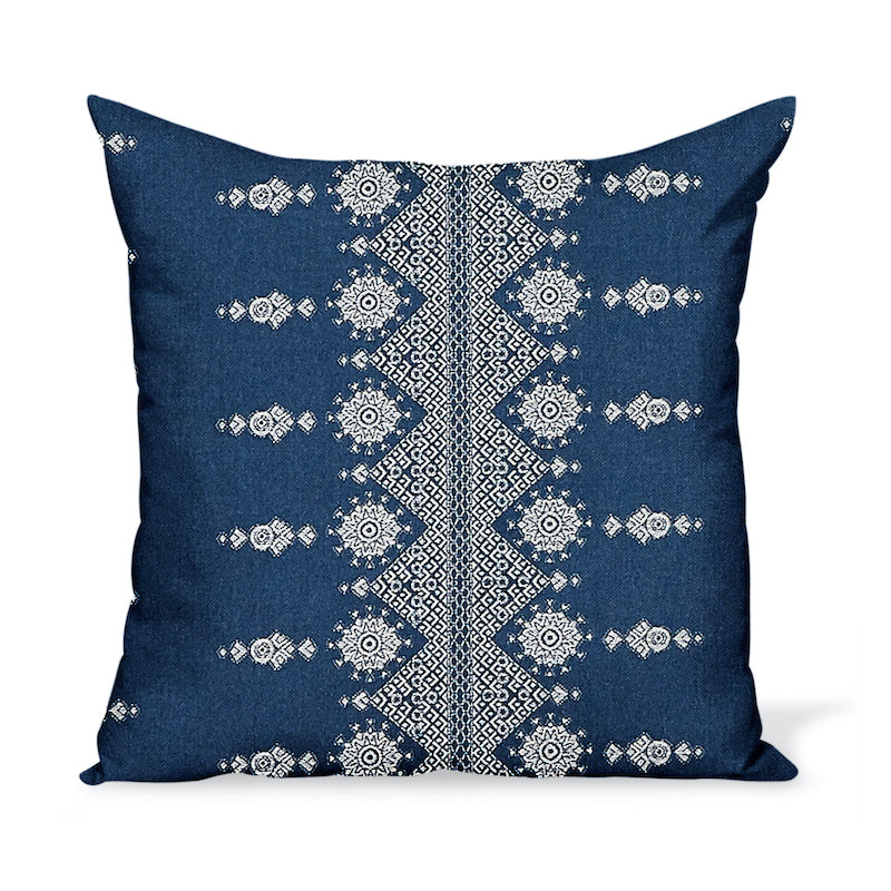 Peter Dunham Textiles Outdoor Carmania in White on Indigo Pillow