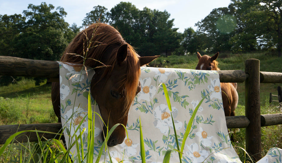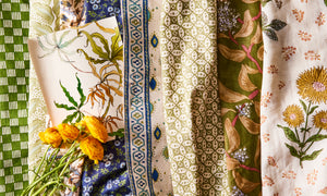Leah O’Connell is an interior designer and textile enthusiast. A native San Franciscan, her style combines the traditional elements of the city with California’s unpretentious ease. Leah’s first textile collection, born of a lifelong love of pattern and color, is a natural extension of her interiors — elegantly exuberant, unfussy and timeless. Few things make her happier than flowers, so it is no surprise this debut is an ode to florals.