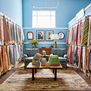 Fermoie creates beautiful, original fabrics and wallpapers in their own studio and factory in England, printed to order and shipped within 7 business days (!). With hundreds of colorways in textural plains to large scale designs, the collection is comprehensive and impressive. Work with our showroom for cut yardage and wallpaper, and shop right here online for Fermoie's popular lampshade program, which has taken the industry by storm.