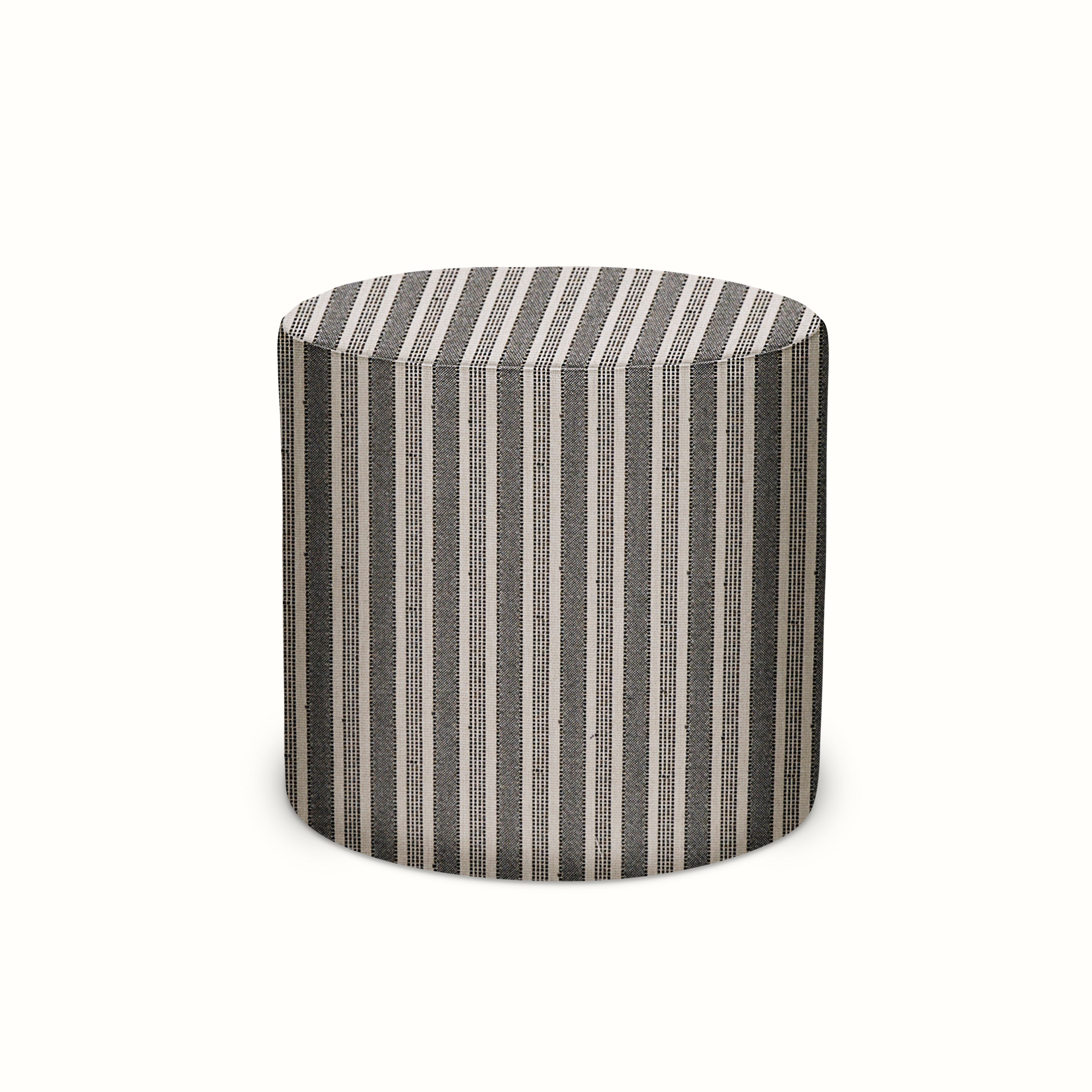 Indoor/Outdoor Pouf in Peter Dunham Textiles Amida Charcoal on Natural