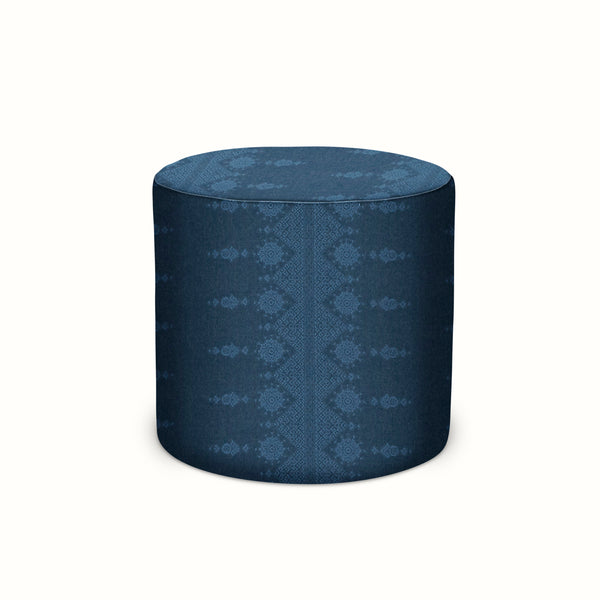 Indoor/Outdoor Pouf in Peter Dunham Textiles Carmania Midnight on Indigo