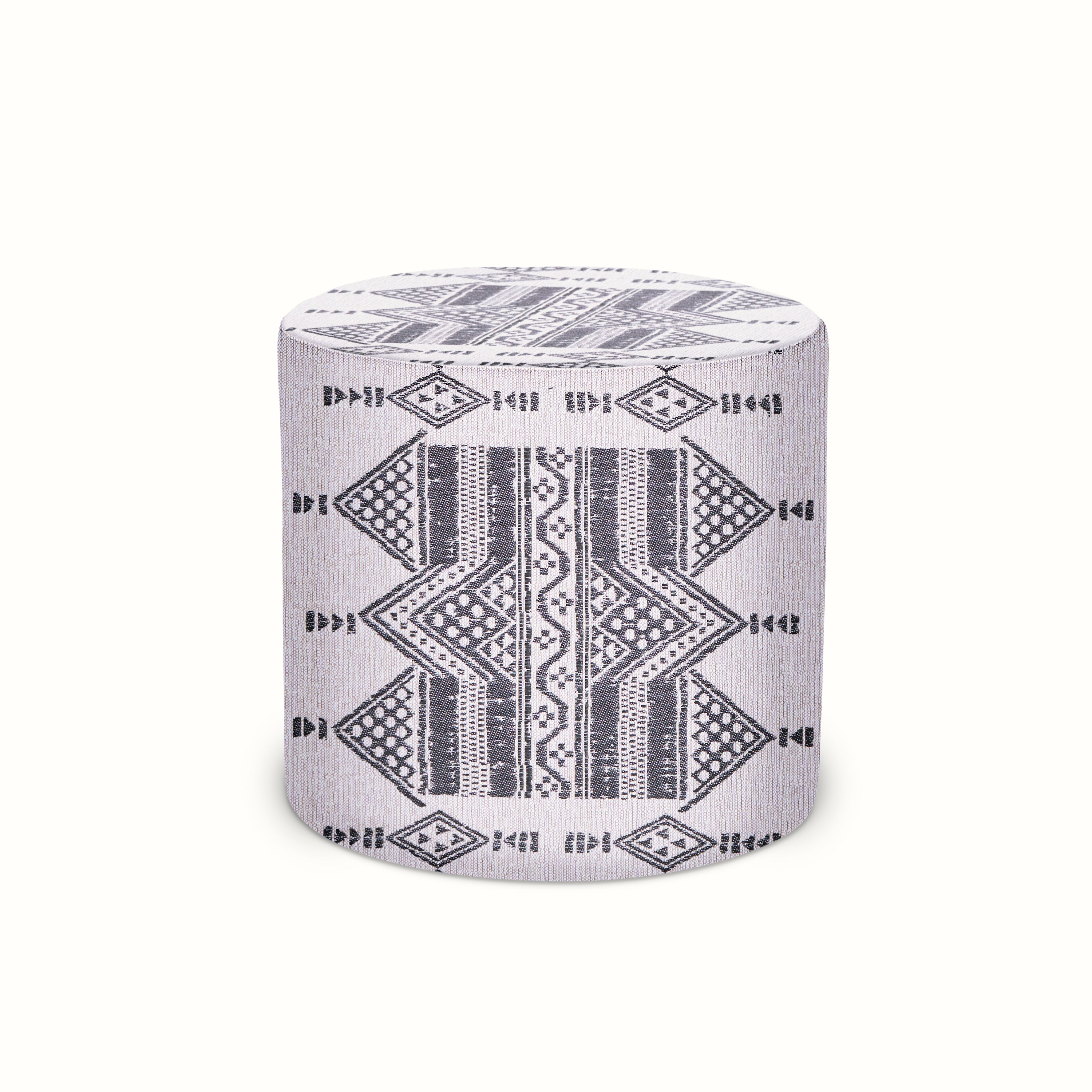 Indoor/Outdoor Pouf in Peter Dunham Textiles Mombasa Onyx/Natural
