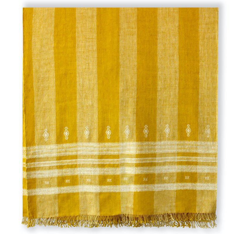 The loom is only so wide, so our bedcovers are pieced together to create the generous scale. The seam where the pieces are joined is a reminder of all the handwork that goes into the production.