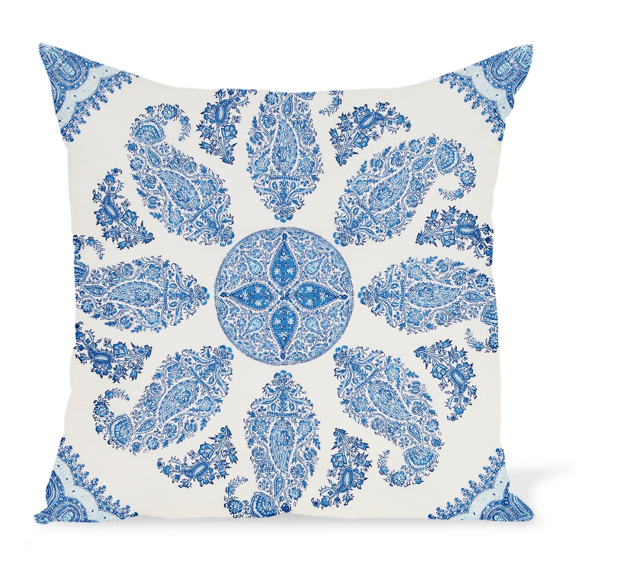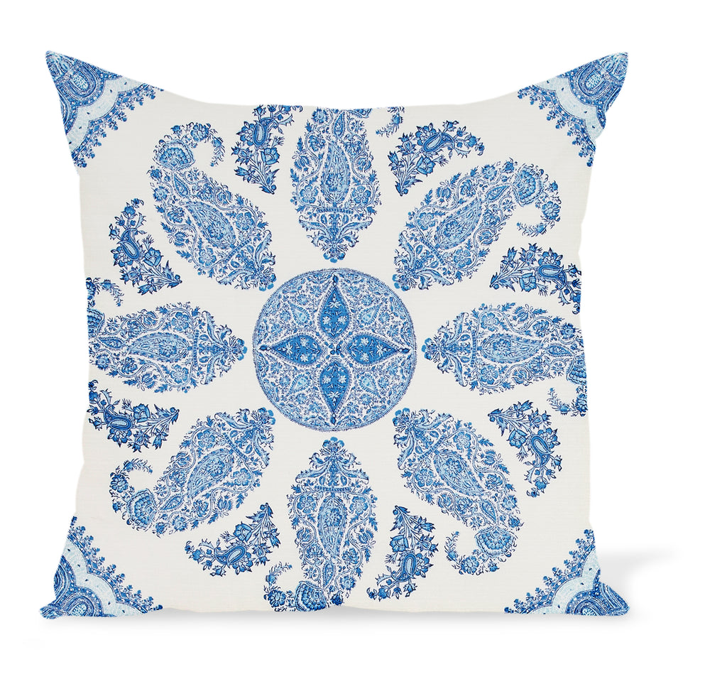 Peter Dunham Textiles Outdoor Samarkand in Indigo on White Pillow