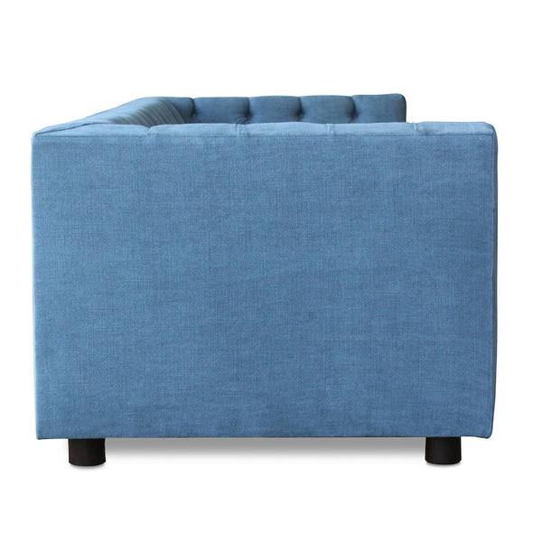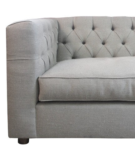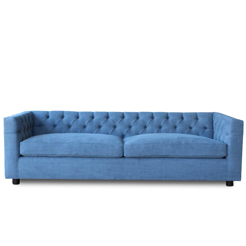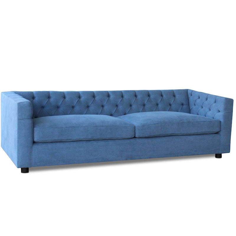 Our beautiful Wormley Sofa was inspired by a 1950s Edward Wormley Sofa, featuring button-tufted details along the back and self-welt seat cushions. This sofa is available in one of our six indoor/outdoor performance textiles, otherwise requires customer's own material (COM).